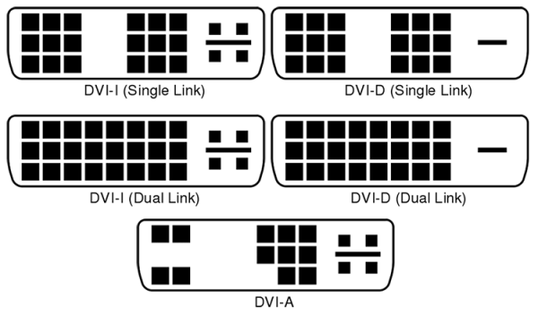 The DVI (Digital Visual Interface) offers both analog signals, digital signals, or a combination of the two. Like the HDMI, it has various connector types for different signal types.